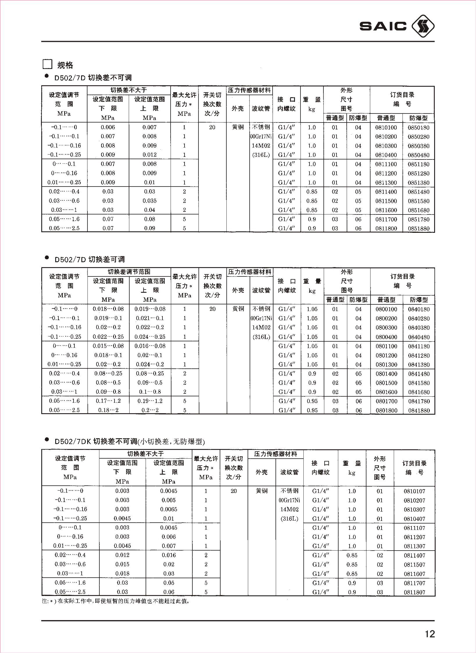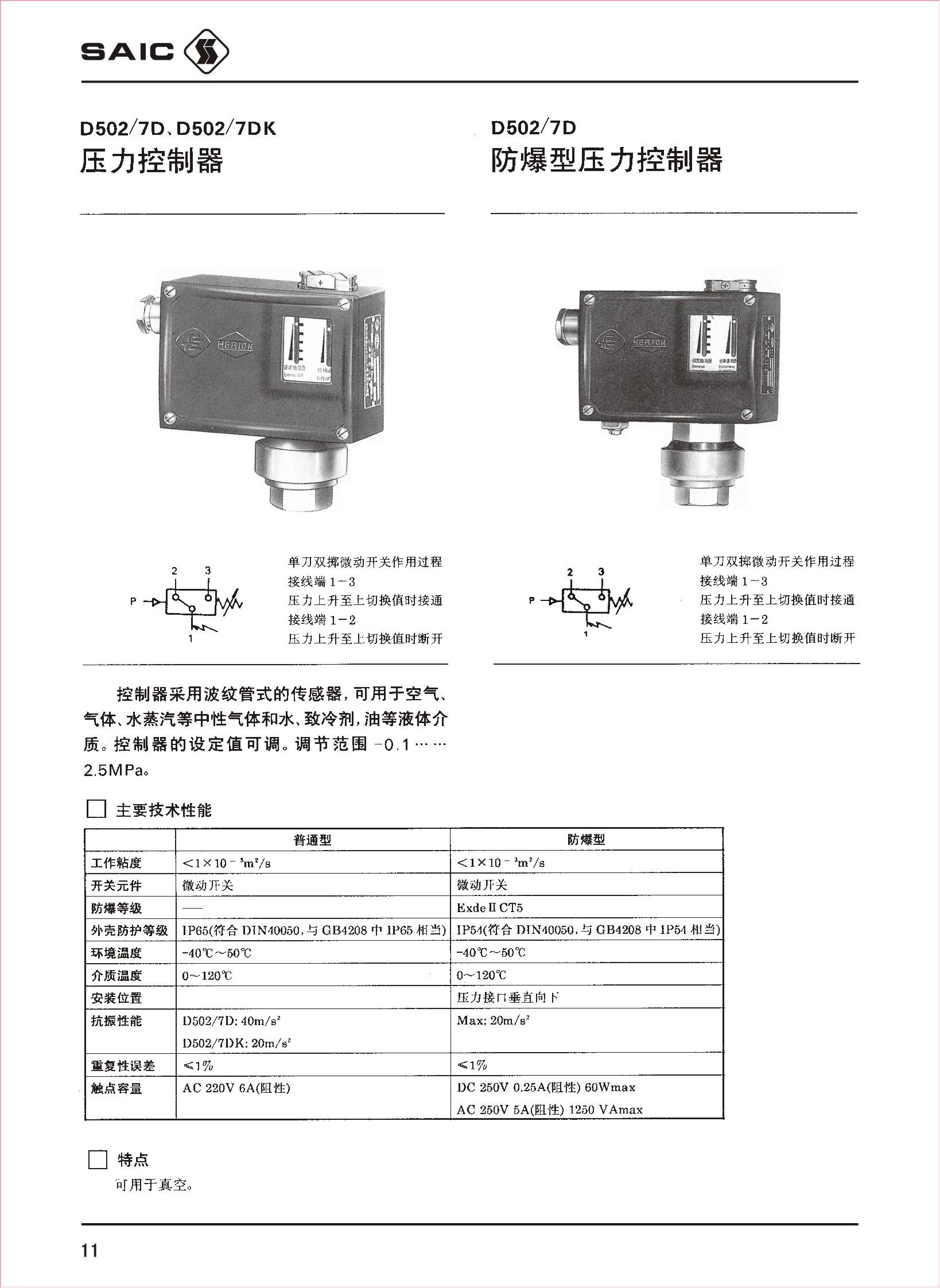 D502/7D防爆压力控制器