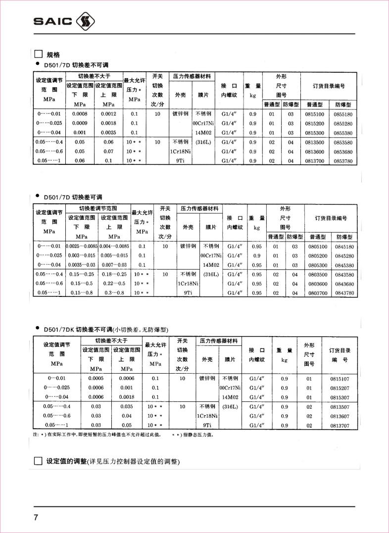 D501/7D压力控制器