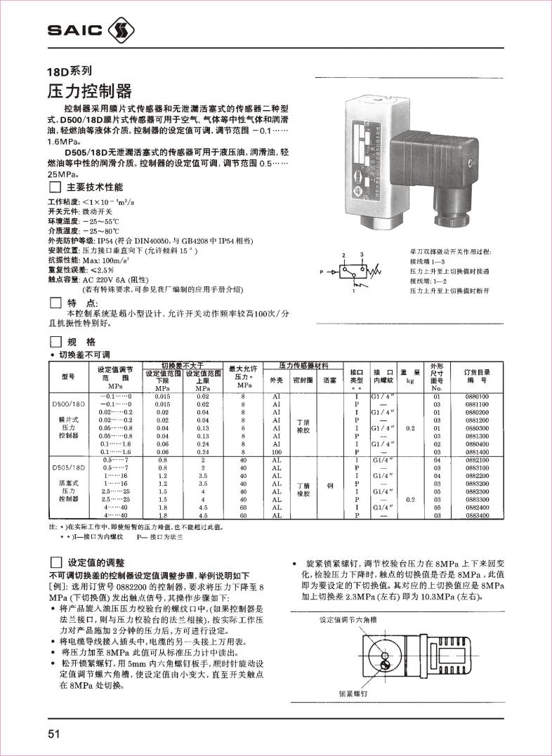 D500/18D膜片式压力控制器