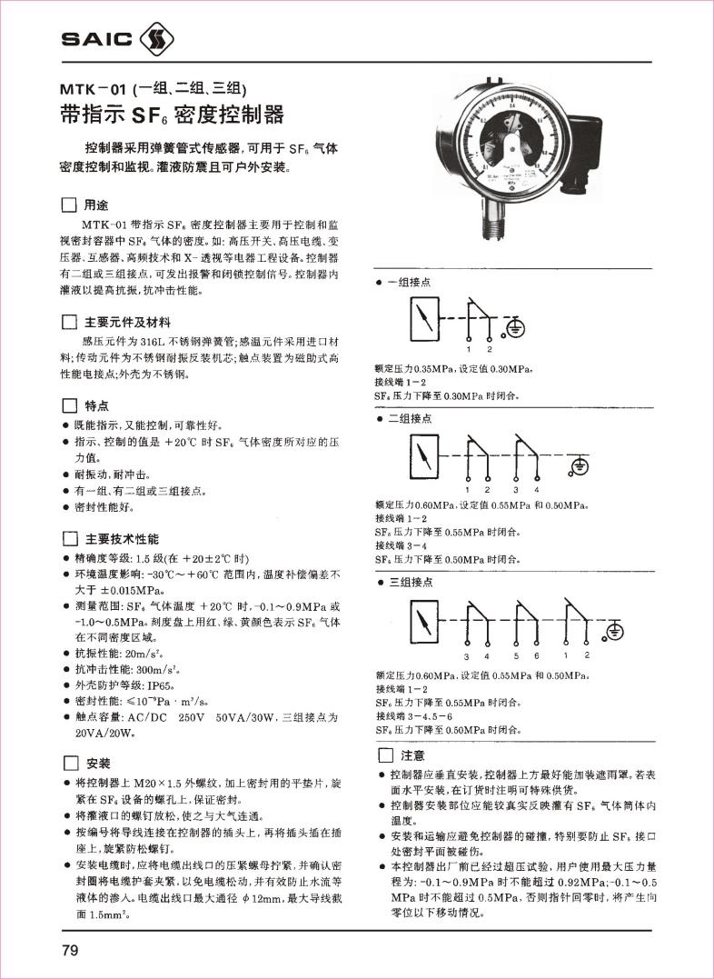 MTK-01带指示SF6密度控制器